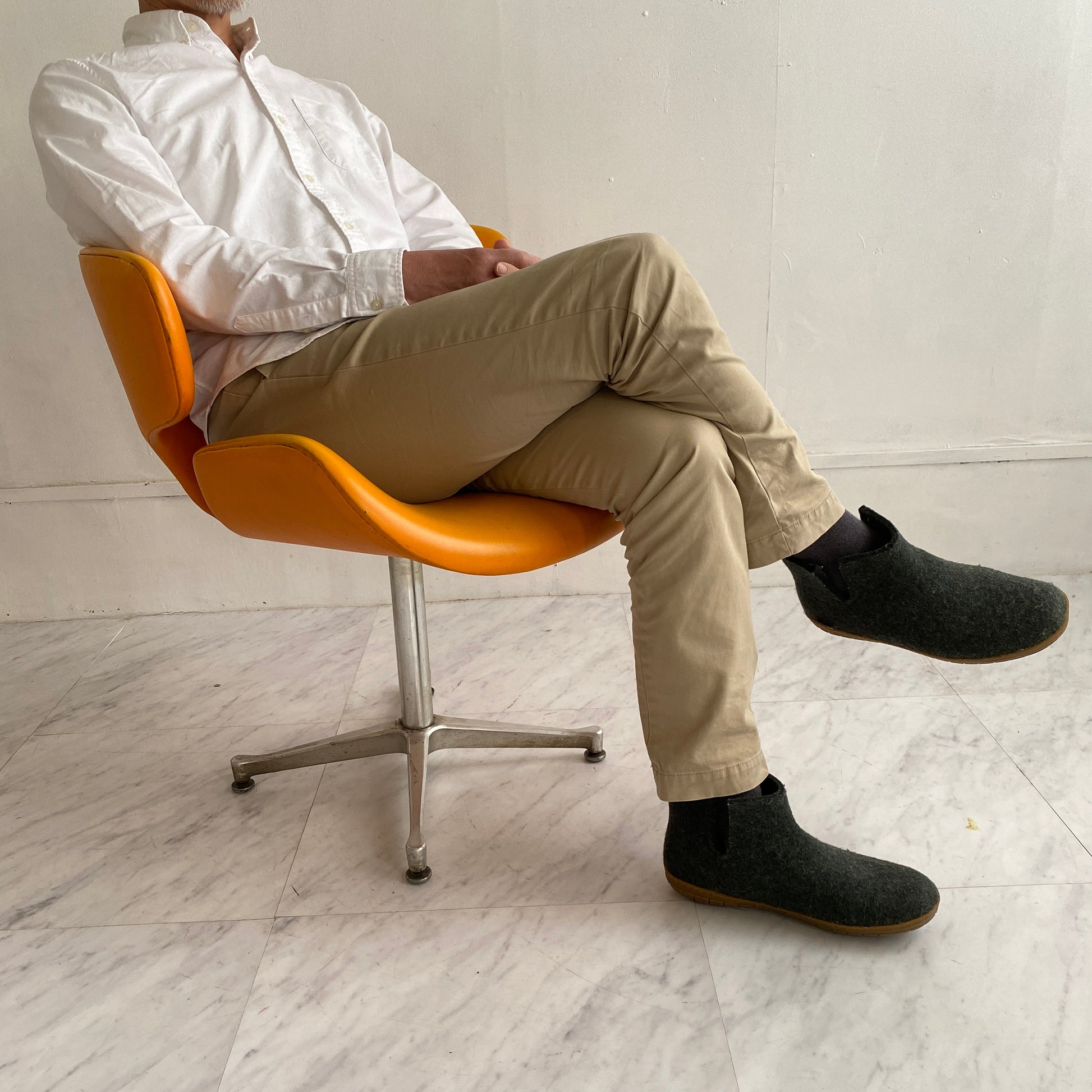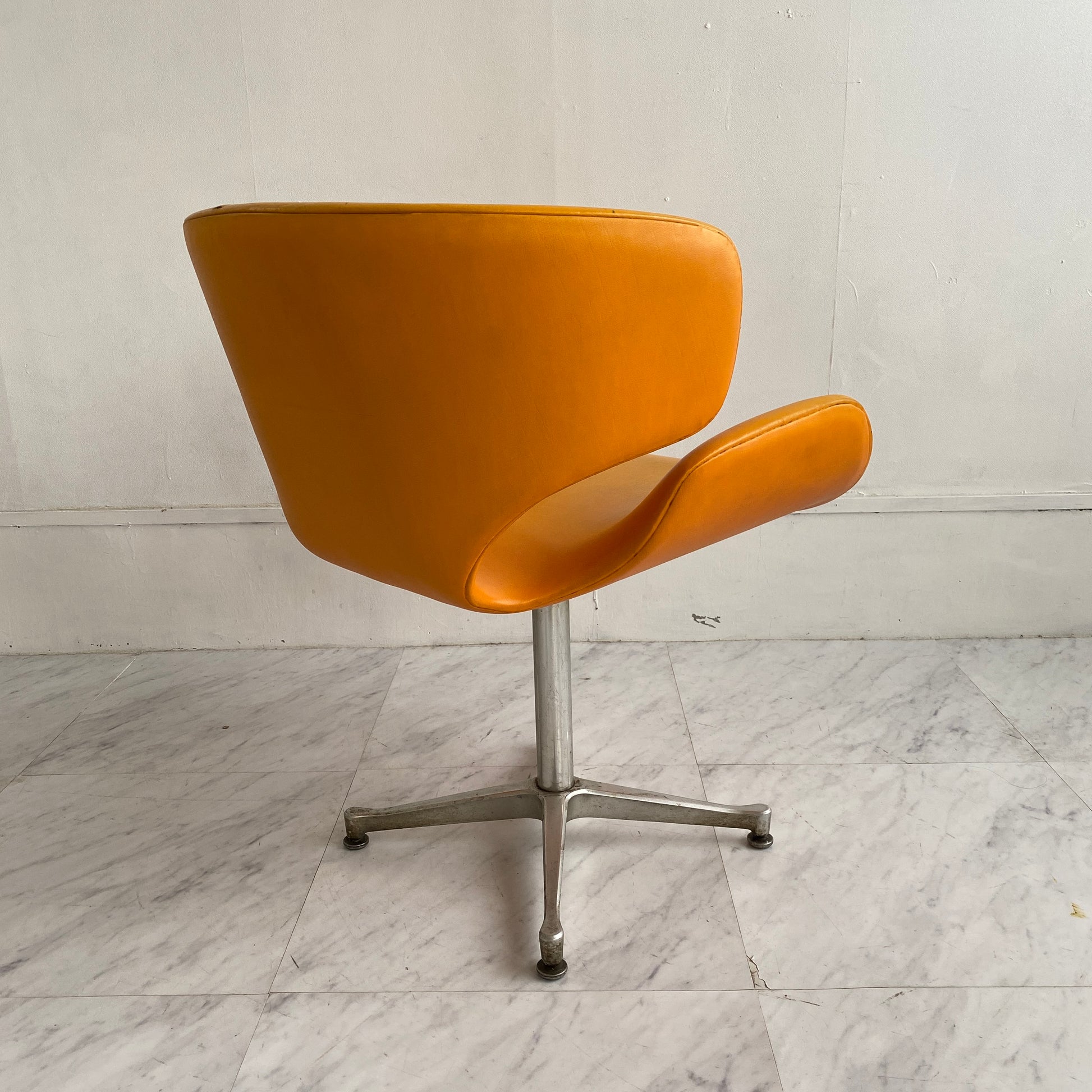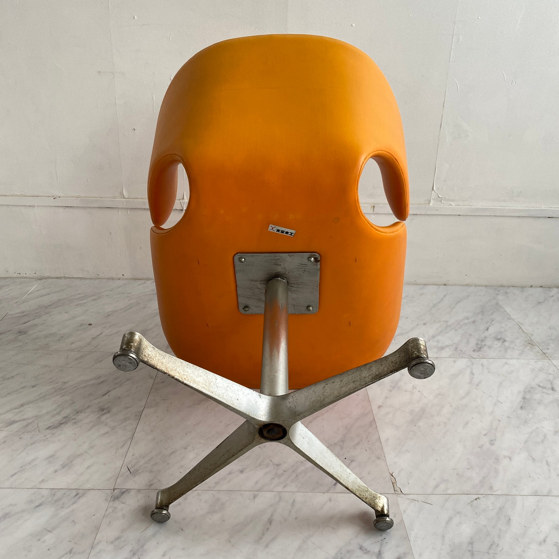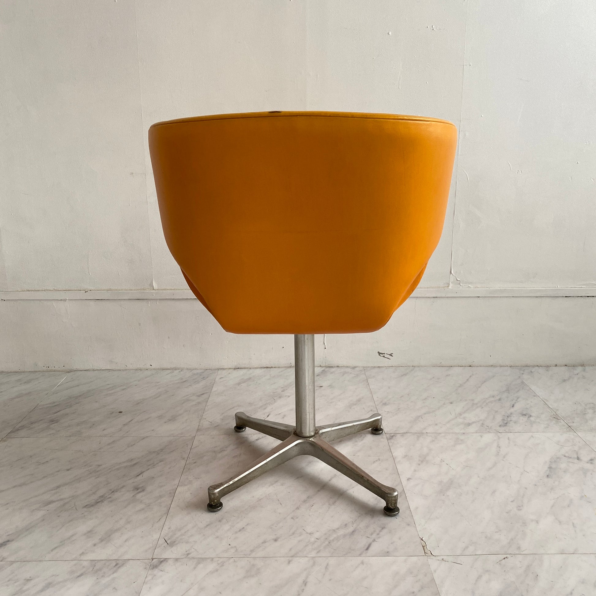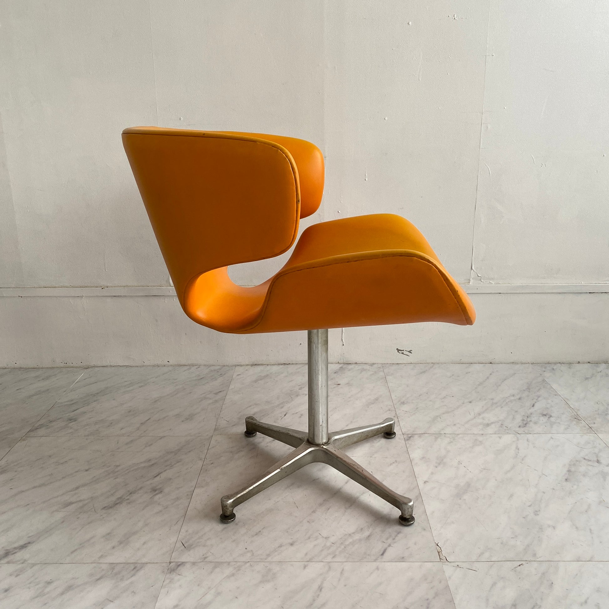 剣持勇 ヴィンテージ 天童木工 カブトチェア ロビーチェア オレンジ 合皮 希少 USED